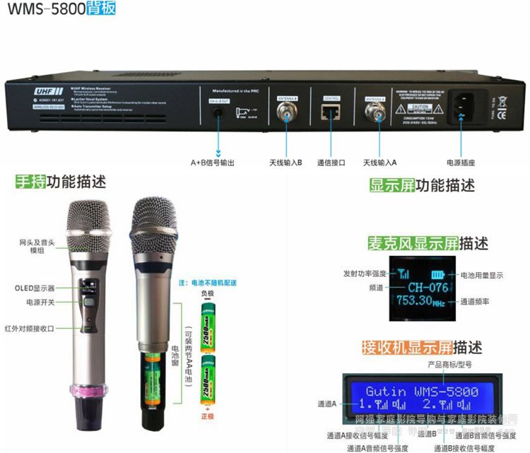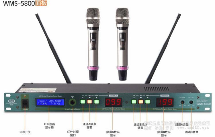 Gutin WMS5800 專業無線麥克風谷田音頻專業無線麥克風 Gutin WMS5800支持200個頻道擁有更強的抗干擾能力、提升了人聲的清晰度、中低頻飽滿度,更好的動態響應,更寬的頻響。