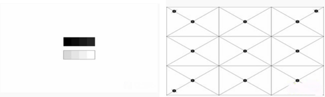 在對比度測試當中,我們為您帶來了ANSI對比度,ANSI對比度非常貼近我們的日常觀影感受,我們采用的是16個黑白相間的色塊進行測試。
