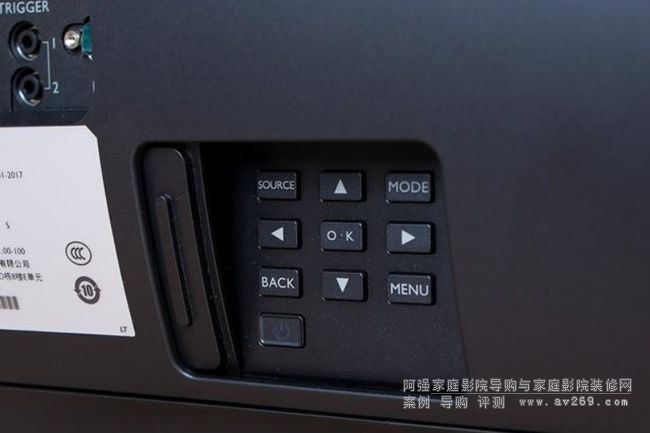 明基X12000H高端家庭影院投影機黑色的機身看起來高端大氣,可以與家庭影音室環境完美的融合在一起。在機器左后方的滑蓋內裝有簡單的實體按鍵,界面簡潔直觀,在沒有遙控器的情況下用戶也可以快速操作。