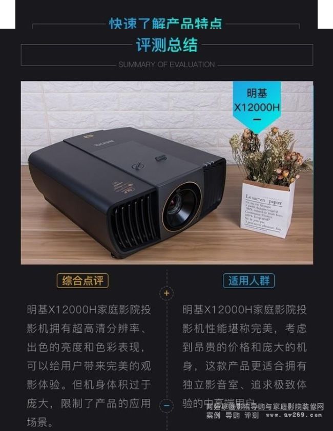 上圖就是明基X12000H高端家庭影院投影機的客觀測試結果,時間有限的朋友可以通過它對這款產品進行一個初步的認識。但要想了解一款專注于家庭影院的高端產品,光靠幾個數值是遠遠不夠的,所以筆者還是建議您能看完整個評測。