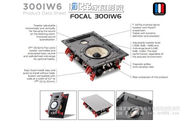 該300IW6內置揚聲器 由法國制造,致力于家庭使用。該產品適用于房屋的每一個房間,在立體聲系統和/或多通道配置中給您最大的滿足。阿強家庭影院網歡迎您!
