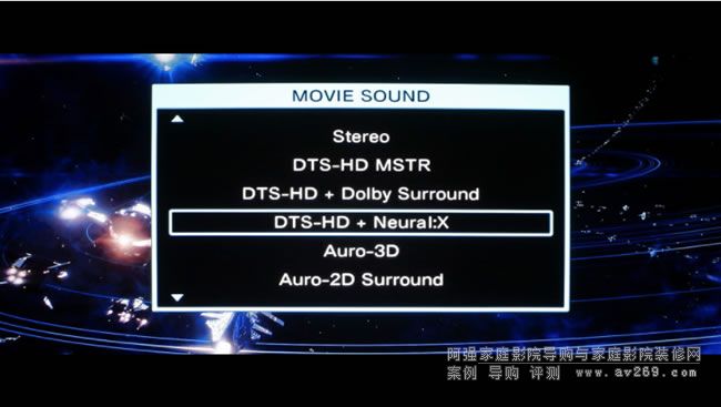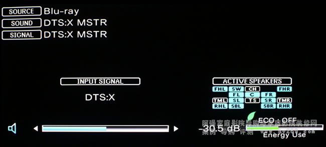 前面提到經(jīng)過對應(yīng)IMAX Enhanced的韌體更新之后,Denon AVR-X8500H在沒有音訊輸入時「純DTS音效模式」選項就不見了……不需要擔(dān)心,因為當(dāng)播放DTS:X音效編碼軟體時,選單就會有「DTS:X MSTR」音效選項出現(xiàn)了。