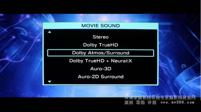 至于播放Dolby Atmos音效4K UHD BD時,選單就如上所示,可選擇音效模式基本上與還未有音訊輸入時是相同的。