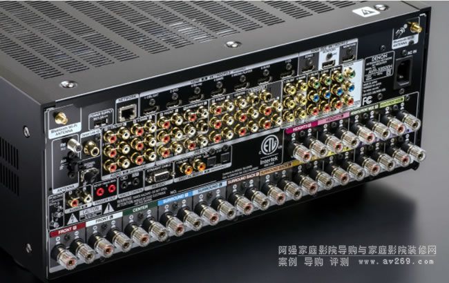 Denon AVR-X8500H內(nèi)建獨立的13聲道后級電路,但背板卻配備了多達(dá)15聲道的喇叭端子。如前所述,這是為了讓Dolby Atmos/DTS:X與Auro-3D可以由8支「高層喇叭」裡切換選擇其中的6支對應(yīng)發(fā)聲,目前Denon AVR-X8500H正在《Hi-AV影音網(wǎng)》視聽室積極評測中,也由于本站獨有的9.1.12(21.1)聲道喇叭配置,得以完全評測Denon AVR-X8500H的各種喇叭配置狀態(tài)(包括Auro-3D最高階的13.1聲道模式),關(guān)于本機的詳盡器材評鑑剖析稍后將刊出,敬請期待!