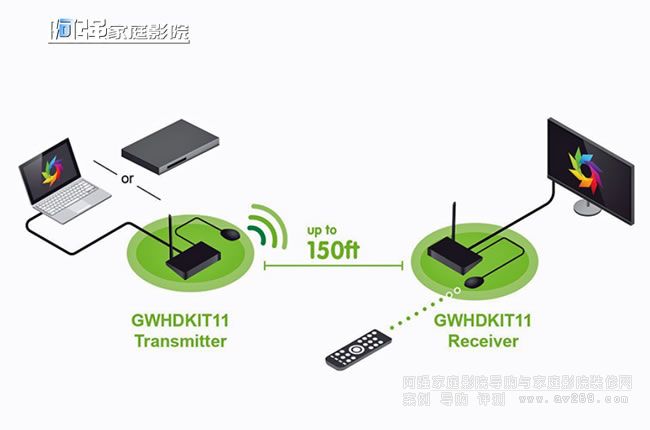 WiHD方案采用60GHz頻帶,最遠(yuǎn)支持18m,但是如果穿墻會(huì)減弱性能甚至不通。建議發(fā)射端和接收端在同一視線范圍內(nèi)是最好的。支持WiHD方案的品牌包括DVDO、Gefen和Monoprice。