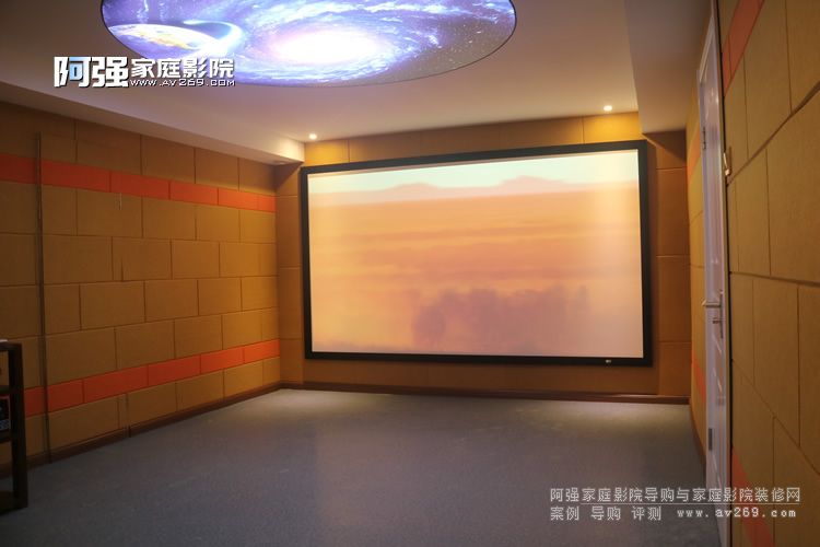 家庭影院空間推薦不反光深色系材質,您所看的面層和燈光顏色均可以定制,請把您的喜好告訴阿強,我們會根據現場空間和設備提供定制方案供您參考: