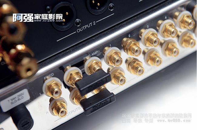 另外,需要注意的是。MA9000提供前級輸出和后級輸入接口,兩者之間是通過一對跳線進行連接。也就是說,MA9000本身可以作為純前級和純后級使用。如果你把跳線拿掉,直接將信號線接到有“PWR AMP”字樣的接口,其實和使用Passthru功能完全一樣的,但通過Passthru功能的好處是可以提供更大的靈活性。例如,你需要將家庭影院和兩聲道音響相結合,聽純音樂的時候可以將AV功放關掉,信號輸入切換到CD/SACD播放機即可。而當需要看電影的時候,打開AV功放,Passthru功能自動開啟,然后切換到響應輸入端即可。但如果連接到“PWR AMP”接口就只能對應一個前端設備,不可能像Passthru功能那樣那么靈活了。