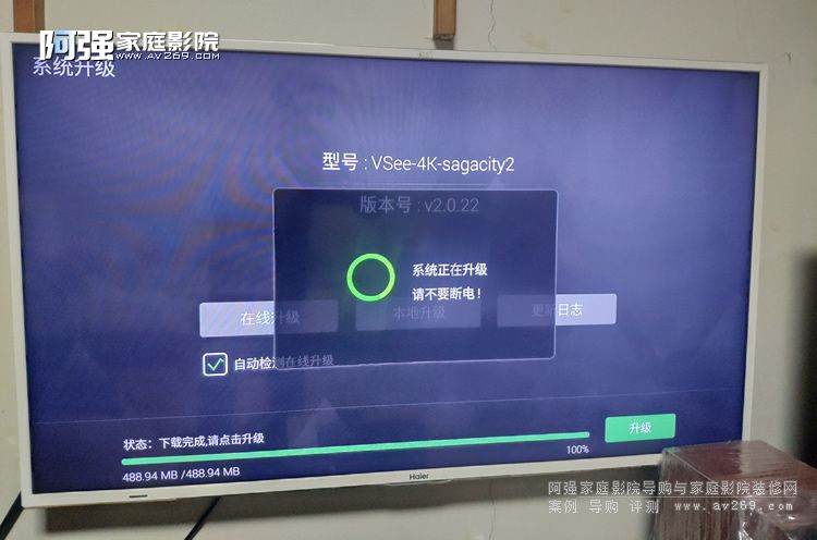 升級完成后,我們回到系統升級界面查看版本,已經顯示為最新的固件版本V2.0.23了,到此升級完畢,你可以享受用硬盤播放機播放藍光碟片的強大功能。當然現在你的軟體已經支持了,只需要配一臺藍光光驅即可,要想了解如何增加藍光碟片播放功能請繼續關注阿強家庭影院網!