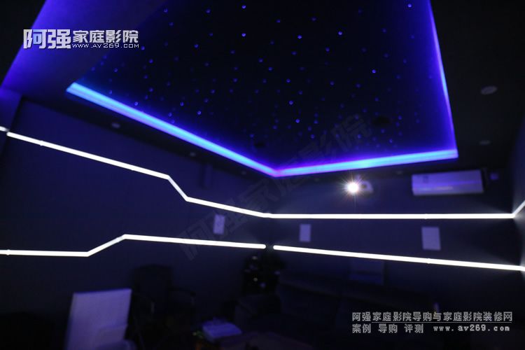 家庭影院星空燈和墻體燈帶結合,夢幻般的影音空間。