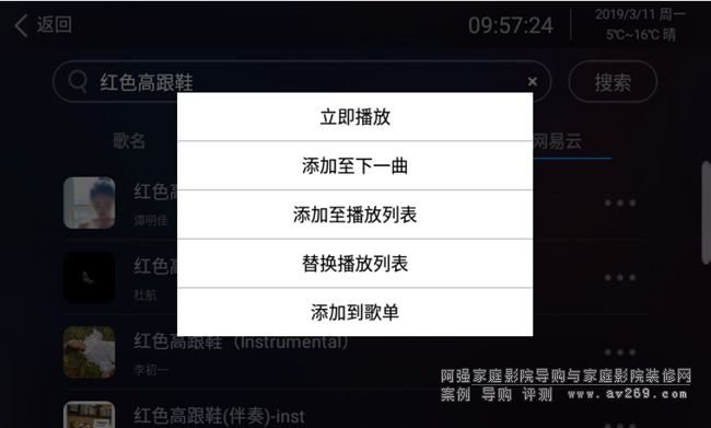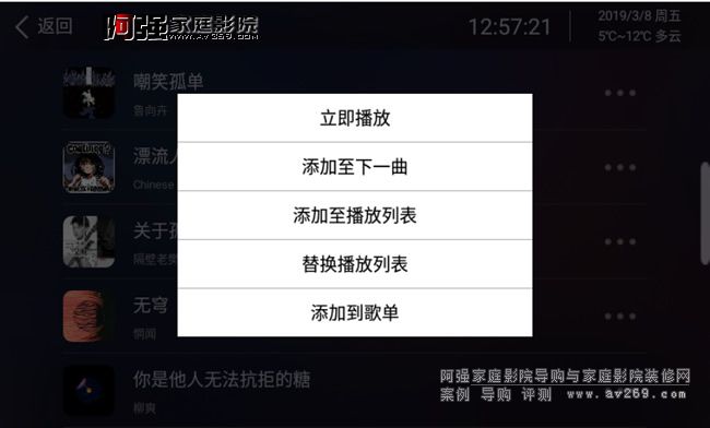 按鈕 ,可以選擇立即播放、添加至下一曲、添加至播放列表、替換播放列表、添加到歌單。