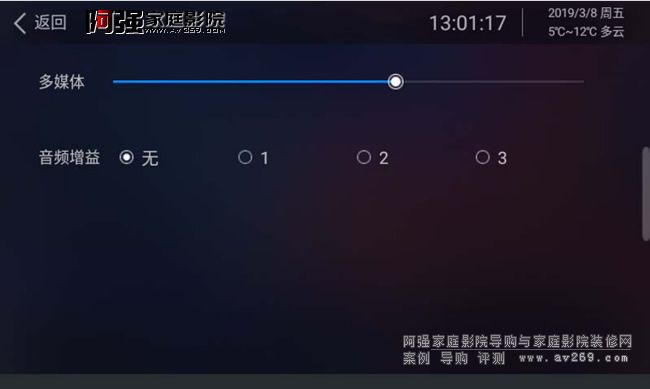 進行媒體音量大小調節,音頻增益調節設置,音頻增益默認不要打開。