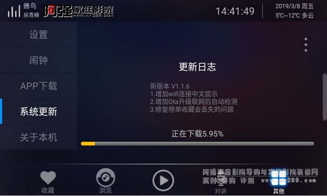 其他類目中有設置,鬧鐘,APP下載,系統更新,關于本機。