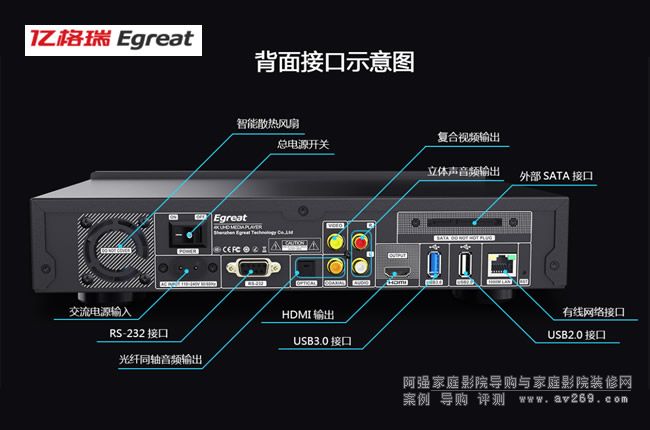 √ 前置硬盤倉設計,內置SATA 3.0接口,支持大容量硬盤,方便典藏影庫大片;