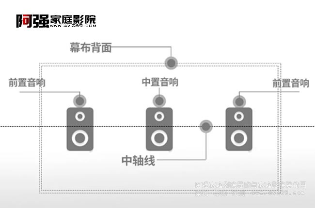 音箱放在屏幕后面時,能夠?qū)⒅饕粝渑c中置音箱擺放于同一水平線并處于屏幕的中軸線上,這樣可以保證前方聲道的統(tǒng)一性。