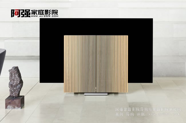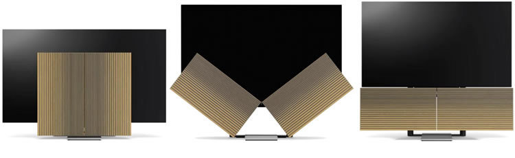 Bang & Olufsen 在 2019 米蘭設計周發布了最新產品Beovision Harmony:可開合的蝶翼音響單元搭載 77寸的 LG OLED C9 電視,形成一體化的聯動升降結構。