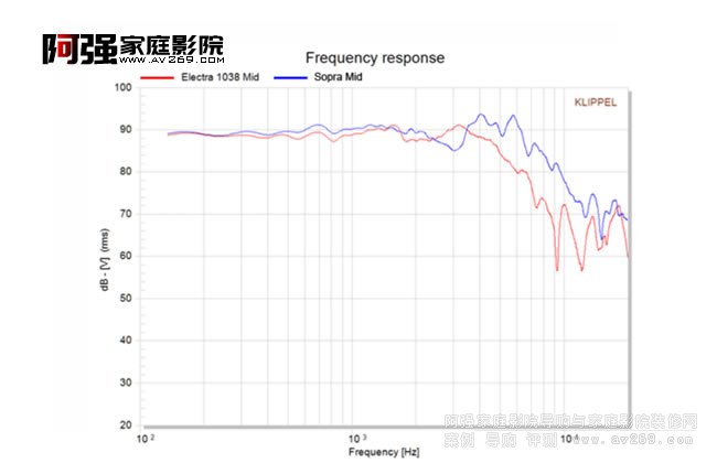 ▲從原廠圖表可以發現,Sopra的中音單體量測結果(藍線),在5kHz以上的頻率響應滾降的速度變得更慢,由此可呈現出更飽滿的中音細節,與高音單體的銜接也更完整