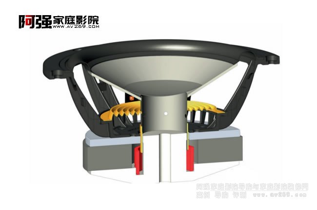 再看到中、低音單體則是搭載了「中性電感回路(NIC;Neutral Inductance Circuit)」。這個設計有什么優勢呢?喇叭單體運作時,音圈與磁鐵會產生磁場,但當音圈移動的時候,它與磁鐵之間的距離改變則會產生感抗不均勻。為了解決這個問題,許多較講究的單體會在磁極上套上一個法拉第環,使得磁場更為線性。而Sopra的中、低音單體也是採用這樣的設計,但不同的是Focal更加講究,透過他們長時間的研究,經過電腦實測結果不斷修正,將法拉第環的大小、材料與位置上做了原廠認為最完美的調整,并宣稱能讓5kHz以上的頻率響應衰減得更慢,降低70%的諧波失真與內調失真。