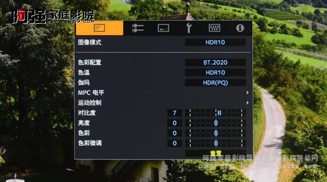 基本的圖像調校功能菜單與JVC以往家庭影院系列機型并沒有太大的區別,包括了對比度、亮度、色彩與色彩微調功能,如果想要對色彩、灰階、運動控制以及4K數字處理深入調校則需要進入相對應的子菜單。