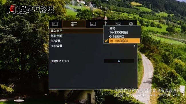 關于輸入電平方面的設置,可以讓用戶選擇16-235、0-255以及16-255,根據ISF方面的要求,選擇16-255更為合適。