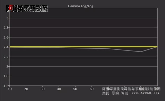 再觀察HD狀態下的伽瑪表現,接近于測量所設的BT.1886標準,只在90%高光部分出現了偏亮的現象。