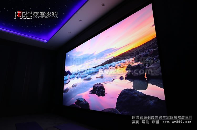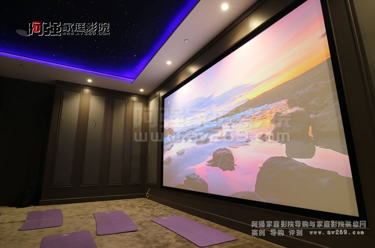 北京家庭影院裝修案例效果圖展示提前看! 位于東五環的東易日盛大夏總部家庭影院影音室完工圖片 多功能影音室在大空間里面展呈現,采用JBL極品系列和Revel嵌入式音箱組成7.2.4聲道影院系統。 作為裝修公司公共展示廳使用、選用明基HLD新光源長達兩萬小時以上的光源使用壽命,且光損失非常小,可以在高負荷頻率的環境中提供高水準的4K影像回放服務。 新光源可以提供200英寸以上的影像觀看。 更多屏攝僅供參考 更多北京家庭影院裝修案例阿強為持續更新中,更多細節圖片請續續關注!