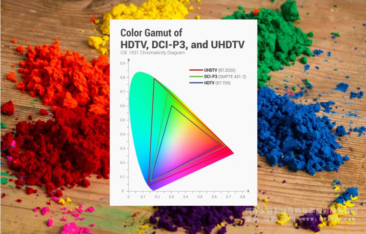 我們所看的電影,也有一套專業的色彩空間標準,那就是我們常聽的 DCI-P3。DCI P3 色彩空間是一種 RGB 色彩空間,由 SMPTE 于 2007 年推出。DCI(Digital Cinema Initiatives 數字電影倡議)成立于 2002 年 3 月,是迪士尼、派拉蒙、索尼影視娛樂、環球和華納兄弟工作室的合資企業。DCI 的主要目的是建立和記錄數字電影開放式架構的自愿規范,以確保統一的高水平的技術性能、可靠性和質量控制。成員包括華納兄弟、MGM、二十世紀福斯電影、環球影業和索尼電影娛樂等巨頭,所以不論是電影的前期拍攝還是后期制作,都遵循著 DCI-P3 色彩空間的標準。DCI 推出的 DCI-P3 色域完整覆蓋了電影的色彩范圍,另外也覆蓋了 CIE 1931 的 45.5% 色彩空間,相比起 sRGB 要多 25%,比 NTSC 要少 4%。隨著人們開始在智能手機、平板電腦以及電腦等不同設備和應用上觀看電影,不少設備廠商開始將 DCI-P3 色彩空間引入他們的設備,以實現比 sRGB 更好的色彩還原。由于蘋果、索尼、三星和谷歌等公司在他們最新的設備中采用 DCI-P3 標準,這些產品都擁有非凡彩色的顯示屏。