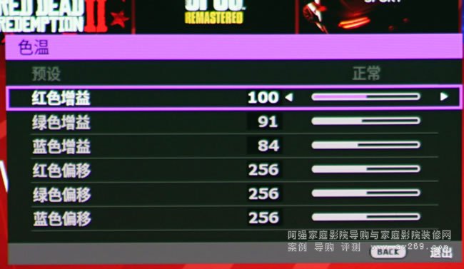 在圖片設置中我們可以看到「高級」設置的環節,里面有諸多微調功能,其中 HDR 亮度這一塊是一大亮點,此次明基采用的是全新的 HDR10 演算法,總共提供了 5 檔設置(-2 至 2),至于效果如何,后面的演示才是關鍵。