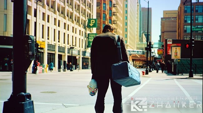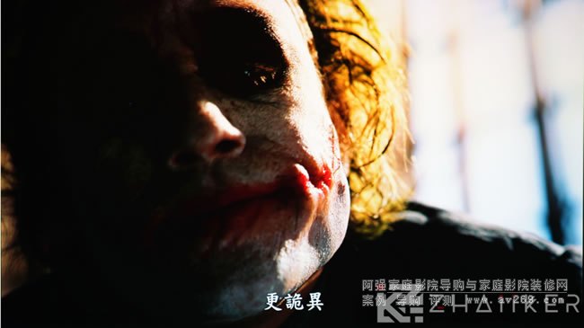 再來看看《黑暗騎士》的 4K UHD 藍光影碟,之前我們提到過,諾蘭針對他的幾部作品的 4K 藍光影碟做了調校,所出來的畫面和影院的效果一致。此番我們通過 W5700 來體驗,看看是不是這樣: