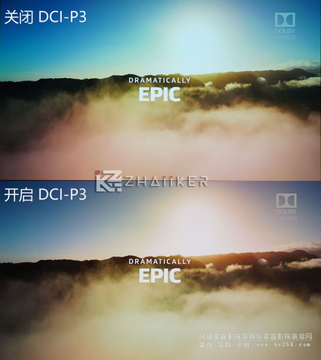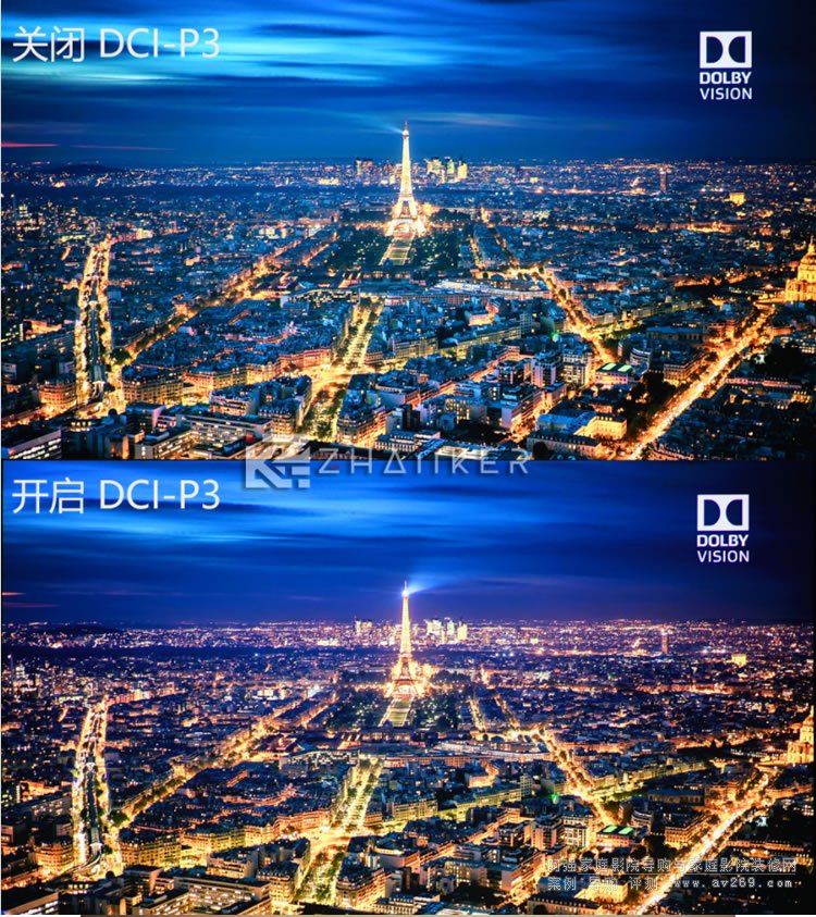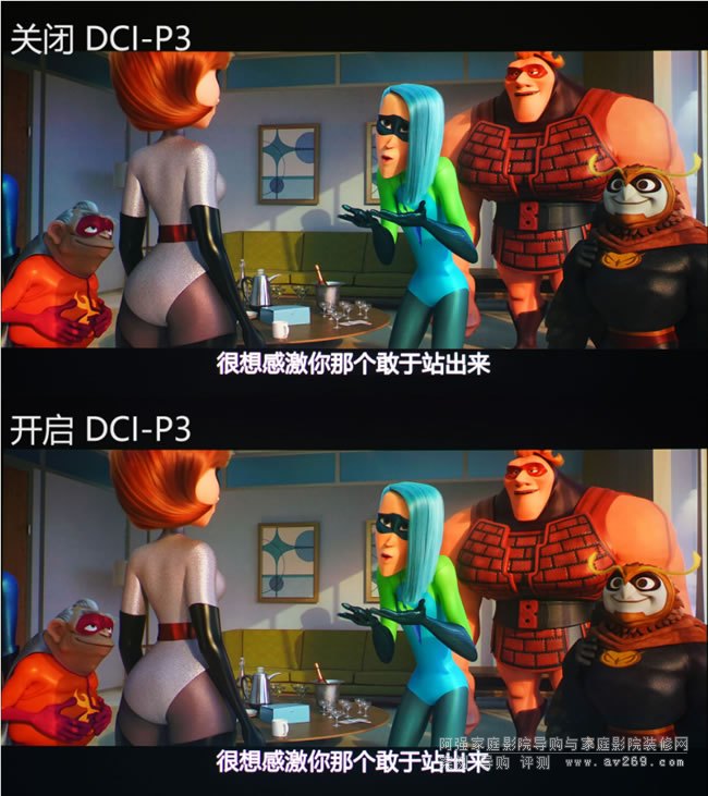 接下來我們試一下手動開啟 DCI-P3 模式,也就是 D.Cinema 模式。首先需要說明的是,不是所有影片開啟 DCI-P3 模式都能得到最好的或者是正確的效果。比如普通藍光碟,或者是 Rec.709 色域的影片/片段,既然這些影片在后期制作的過程中采用的是 Rec.709 色域,那么輸出時肯定是采用 Rec.709 色域是最還原的效果。那么既然如此,什么樣的影片或者說什么樣的情況下才能用上 DCI-P3 模式呢?比如一些 4K HDR 測試片段,本身就是 Rec.2020 色域的,又或者比如一些 4K UHD 藍光影碟,用普通高清播放機或者是電腦播放的時候,輸出無法自動選擇 DCI-P3 色域情況下,這時候,手動調為 DCI-P3 色域,會得到更好的效果,更正確的色彩顯示。