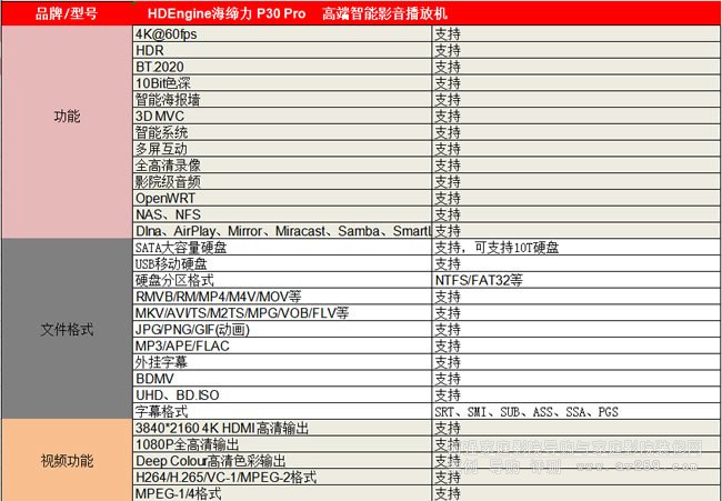 海締力P30pro高端發(fā)燒旗艦、進(jìn)口芯片方案、3D、真4K/60Hz、HDR、全景聲、HEVC 10Bit、錄像功能、UHD、在線播放、海量網(wǎng)絡(luò)影視點(diǎn)播、支持10T硬盤播放、智能海報(bào)墻、BT.2020、2路HDMI接口、NAS、 高速閃存、國際UI交互界面、多功能遙控器,支持內(nèi)置大硬盤、支持藍(lán)光BDMV和ISO文件、 雙增益天線、藍(lán)牙、TF口、藍(lán)牙BT4.0、高級(jí)無損音樂多格式支持、鋁合金黑色氧化拉絲工藝 。