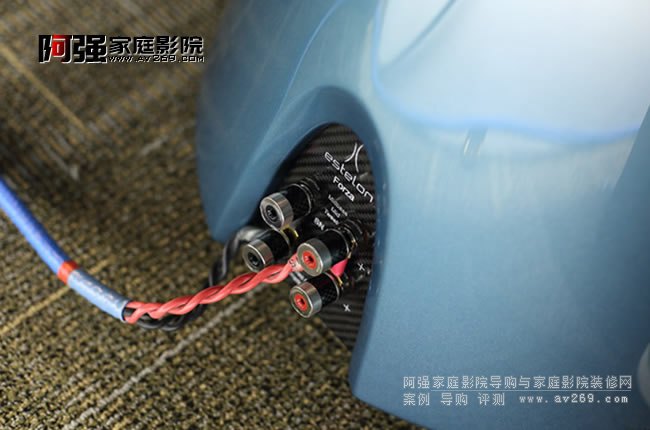 Forza的喇叭線連接可以采用Bi-wire或是Bi-amp,當然簡單一點也可使用跳線,面板與端子都有采用碳纖維,注重細節(jié)是Estelon一在強調(diào)的重點,他們提供的是奢華等級的產(chǎn)品,聲音好只是標準,產(chǎn)品細節(jié)與外觀更是要符合精品水準。上半部的喇叭端子給予高音、中音與中低音,下半部則給予低音。我認為Forza對於擴大機的需求并不低,需要適合的搭配才能發(fā)揮Forza的能力。