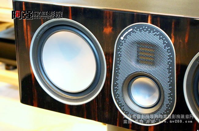 Monitor Audio第五代Gold系列僅有一款中央聲道C250,其所配備的幾支單元是與較小款落地式音箱Gold 200完全相同的,與樂林此處所使用Gold 300差異之處在于低音單元為較小的6.5寸(Gold 300搭載8寸低音兩支),但中高音部分完全相同,因此除了低頻延伸與量感略減之外,前方三聲道的音色連貫性毫無問題。