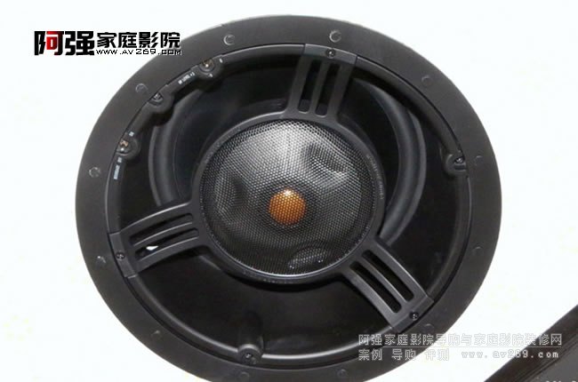 前次造訪時樂林張老板尚未裝設“天空音箱”,主要關鍵原因就是樂林視聽室天花板高度達3.19米,實在很難找到裝設得那么高、又能有充分能量與包圍感的“天空音箱”。不過,日前Monitor Audio全系列音箱進駐,樂林張老板終于找到適合的“天空音箱”產品了——那就是Monitor Audio訂制安裝嵌入式音箱里的C380-IDC。看看上圖天花板底下四個黑色圓形物件,請注意天花板輕鋼架白色方塊的邊長可是有60公分之多,以其為比例尺各位就可得知這款嵌入式音箱體型真的不小了。