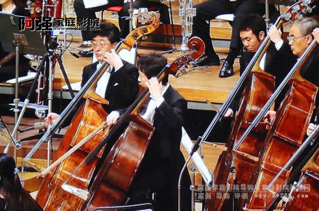 我知道絕大多數家庭影院的用途都是以“看電影”為主,一般都認為多聲道音響系統拿來聽音樂很難與高價兩聲道Hi-End音響系統相比,特別是在對音質音色純度要求更高的古典音樂會錄音更是如此。但是,倘若您有同樣的想法,在聆賞過樂林音響張云捷老板所調整的Monitor Audio第五代Gold音箱之后,肯定會大為改觀并且也想建構一套——因為一套新臺幣百萬元出頭的Monitor Audio Gold多聲道音箱系統,不僅音質音色能符合Hi-End高標準之要求,其來自各方綿密包圍的現場空間感受,更是兩聲道音響系統所無法達到的!影像方面,包括這張以及接著十幾張畫面照片,都是對著Epson EH-TW8400所投射在OS WF302銀幕上的屏攝實拍影像(現場親眼所見更好),請看看這張管弦樂團大提琴組的樂器質感描繪,是不是非常漂亮寫實?