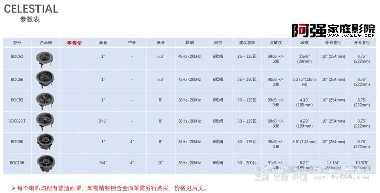 6寸和8寸喇叭的精制鋁合金面罩零售價:¥7500; 10寸喇叭的精制鋁合金面罩零售價:¥9800常規網罩