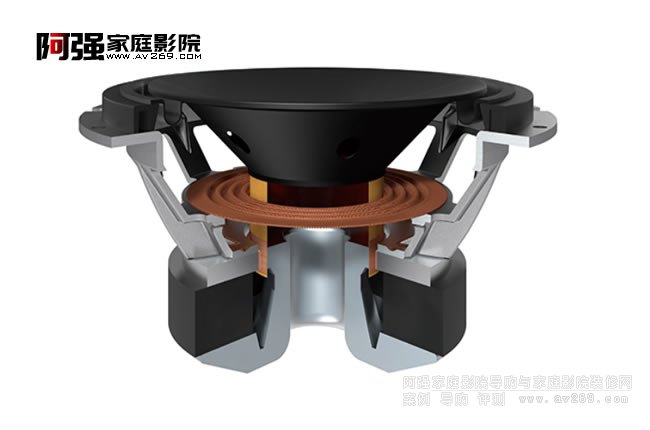 高音和中音的音圈之間的間隙 增加了阻尼器,用于吸收,氣 流通過間隙所引發的雜音