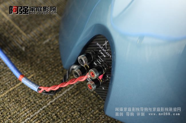 Forza的喇叭線連接可以採用Bi-wire或是Bi-amp,當然簡單一點也可使用跳線,面板與端子都有採用碳纖維,注重細節是Estelon一在強調的重點,他們提供的是奢華等級的產品,聲音好只是標準,產品細節與外觀更是要符合精品水準。上半部的喇叭端子給予高音、中音與中低音,下半部則給予低音。我認為Forza對于擴大機的需求并不低,需要適合的搭配才能發揮Forza的能力。