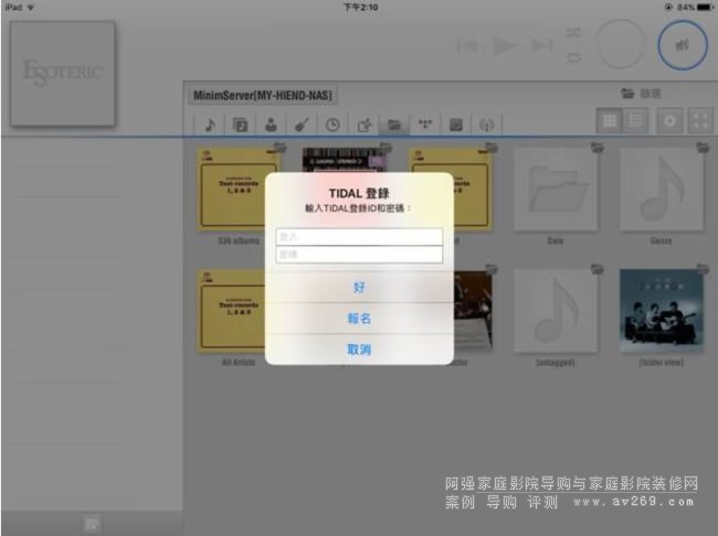 另外還有一項(xiàng)功能,N-01能夠透過網(wǎng)路串流直接播放線上音樂服務(wù)商,目前透過軟體中能直接登錄的有Tidal和Qobuz,這兩家都能提供CD音質(zhì)以上的音樂檔案直播,但因?yàn)槭切枳孕懈顿M(fèi)給服務(wù)商,所以必須要有通行帳號(hào)與密碼。一旦登錄后,資料庫會(huì)直接顯示該服務(wù)商提供的所有音樂檔案,不必另行下載,隨選即播。 (類似電腦使用Spotify或KKBox,但為CD規(guī)格以上的高音質(zhì)音樂,并且有許多發(fā)燒專輯)