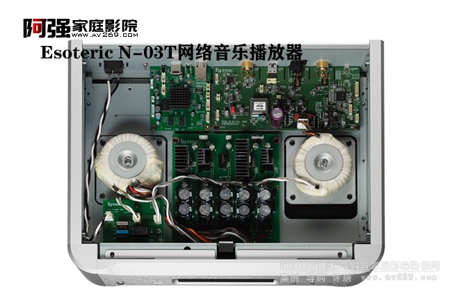 一如Esoteric時(shí)尚兼具穩(wěn)重的風(fēng)格,N-03T的外觀設(shè)計(jì),具有明顯的Esoteric血統(tǒng),但又有其靈活的變化。里面也是用料扎實(shí),并不龐大的身軀,而整體重量達(dá)到17kg,為了追求更好的音質(zhì)表現(xiàn),N-03T也是拼了,可謂是童叟無欺。店主現(xiàn)場為我們播放了幾個(gè)片段的音樂,普通的人聲表現(xiàn)固然是至臻完美了,而一些歐洲的樂器演奏曲目,也是細(xì)節(jié)分毫畢現(xiàn),聲音有韻味,臨場感十足,大有HiFi的意境。