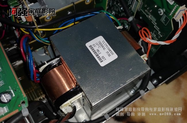 2.內部。內部用料雖算不上豪華,作為一款中端機算是不錯的。拆下頂蓋可以看到內部分為上中下3層電路板,最上層是數字解碼板、中間層是模擬音頻緩沖放大板、最下層是電源整流濾波及功率輸出端子板。