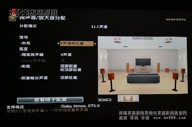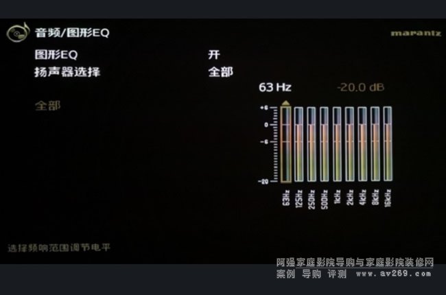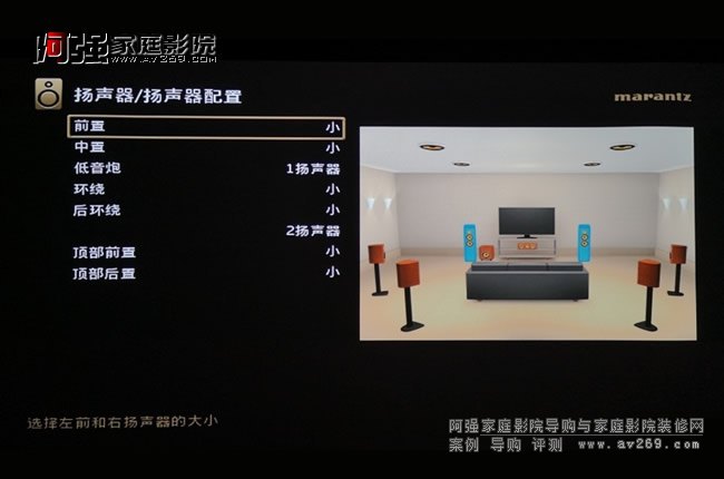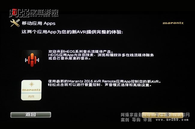 SR6014使用的是Audyssey MultEQ XT32校準系統,可以針對視聽空間特性優化各聲道頻率響應,尤其支持Audyssey手機APP操控,調試直觀方便。音頻菜單中還附有設置向導,從最基本的音箱接線到設置,每一步都有圖文并茂的提示,可以幫助首次使用馬蘭士功放的用戶輕易完成設置,非常人性化。