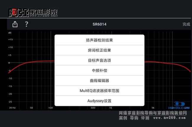 (4)手動微調。自動校準完成后需要再手動檢查一下有無需修改內容,如自動校準可能將揚聲器設置為“大”,最好手動改為“小”;開啟或關閉中頻補償和動態低音;根據音箱特性手動調整分頻點等。修改完以后從手機發送到SR6014功放即可。