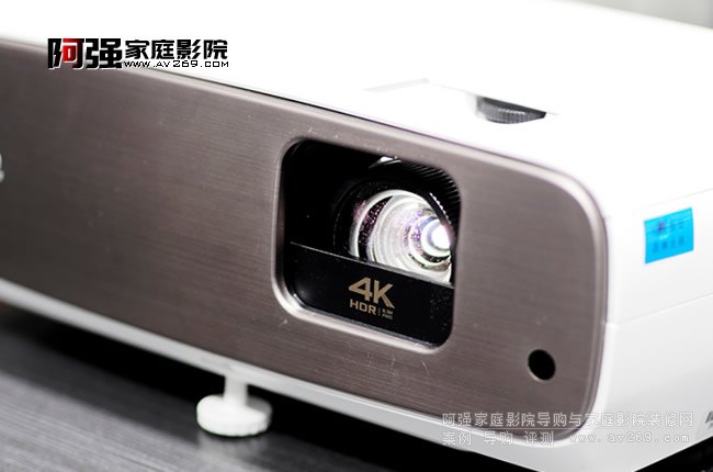 W2700是明基在2萬元以內(nèi)的主力4K家庭影院投影機(jī),正前方的鏡頭處顯示了它支持4K與HDR的兩個重要特點(diǎn)