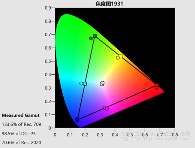 我們現(xiàn)場通過專門的光學(xué)測試儀器以及ChromaPure3專業(yè)版色彩調(diào)校軟件測試后,發(fā)現(xiàn)W2700在4K HDR狀態(tài)下確實(shí)擁有接近于DCI-P3的色彩表現(xiàn),達(dá)到了98.5%的DCI-P3色域
