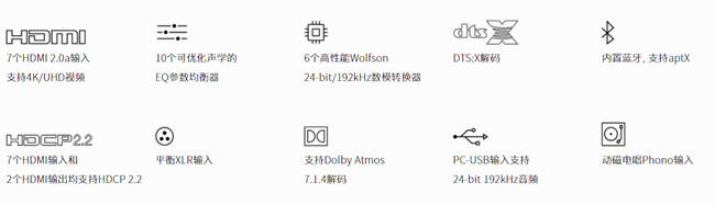 Rotel RSP-1576是一款專門為音樂發燒友和電影愛好者定制設計和生產的產品。該環繞聲解碼器采用了最新的音頻和視頻技術,包括HDMI 2.0a 4K/UHD 60Hz HDR視頻,音頻回傳通道,apt-X CD音質無線流和支持Dolby Atmos和DTS:X的雙TI數字信號處理器(DSP)。