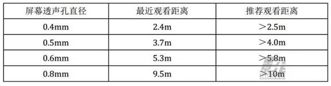 一般商業影院的銀幕,其透聲孔的大小主要有0.8mm、1.0mm和1.2mm等幾種規格,一般需要離開屏幕最少10米以外觀看,顯然這樣的銀幕不能用于家庭影院,誰都不希望漂亮的女主角臉部特寫的時候一臉麻子……于是,開孔直徑更小的微孔透聲幕因此誕生了。目前市售的適合家用的微孔幕,有 0.4mm、0.5mm、0.6mm幾種,經過投影測試,并且把一般用于影院VIP小廳的0.8mm微孔幕加入測試,得到最近觀看距離推薦如下: