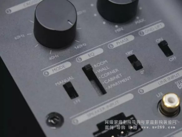 除了常規的音量、分頻點控制旋鈕外,KF92的背面板還提供了五種聲音模式供用戶選擇