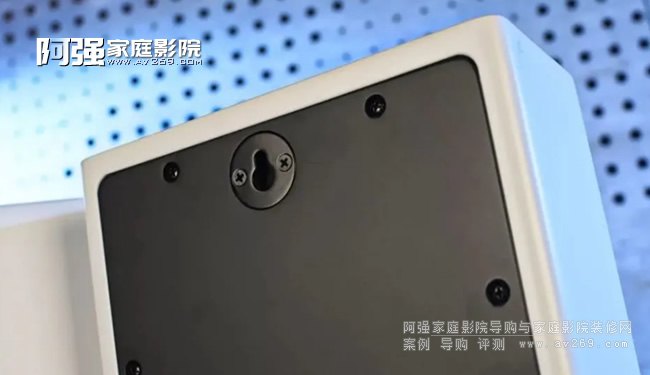 P1有黑白二色可選,并在背面放置了3個壁掛的鎖孔。既然是針對小空間而設計,客廳、臥室等小型視聽室,筆者建議選擇壁掛的方式擺放音箱,提高小空間的體用率。