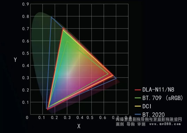 使用全新電影效果濾色片,JVC DLA-N11不僅實現了BT.709的100%覆蓋,而且覆蓋范圍超越了電影制作中使用的DCI-P3色域。在諸如UHD藍光光盤之類的媒介上搭載的HDR內容與傳統內容相比采用了更寬色域。可以更準確地再現天空和大海的自然漸變,花朵上不同紅色的對比,樹葉不同的綠色層次等從前未能展現的色彩。