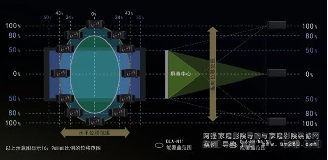 DLA-N11搭載寬鏡頭位移功能,安裝更靈活。提供垂直和水平方向的寬移位范圍,這有助于在不失真的情況下提供自然投影圖像。
